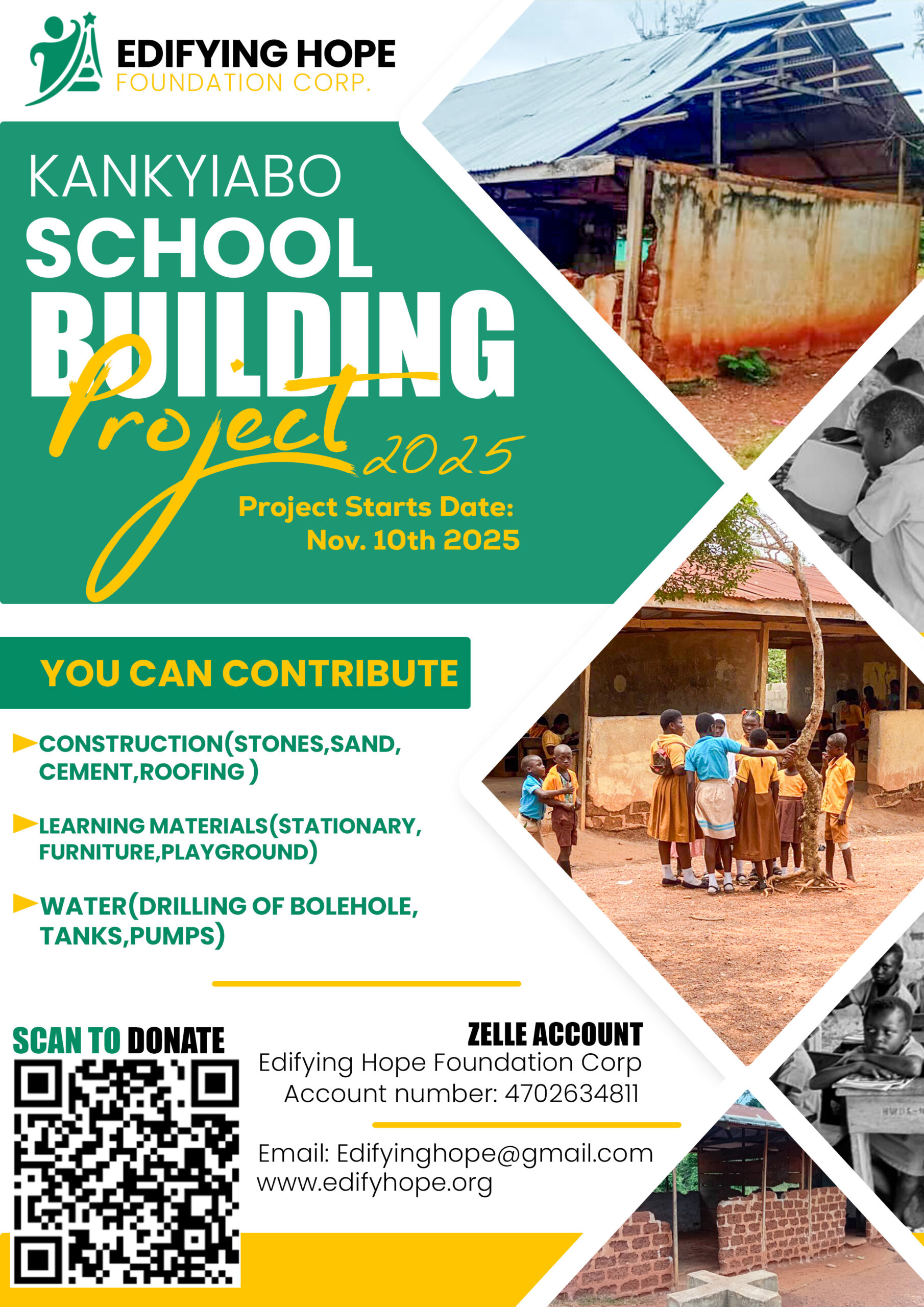 Edifying Hope Foundation representatives engaged with Headmaster Joseph Atuahena Mensah and the teaching staff of Kankyiabo D/A Primary and JHS, gaining a clear understanding of the school's pressing needs. The school has about 200 students from KG1 to JHS3, organizaed into 11 classes, and supported by 16 staff members, including community volunteers.